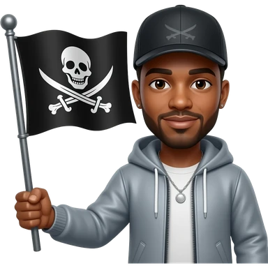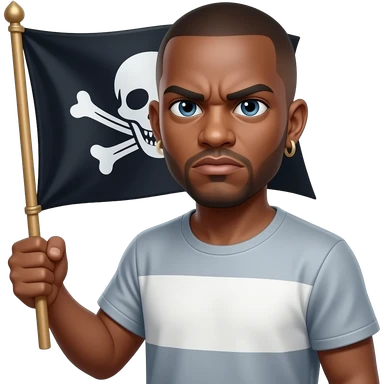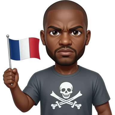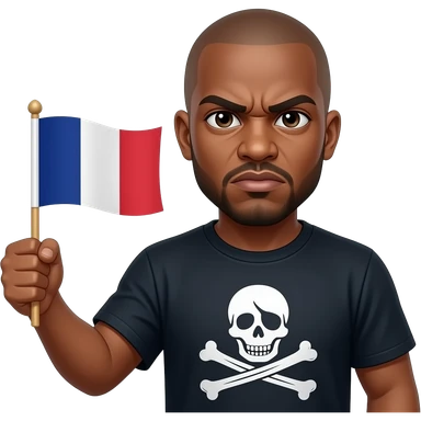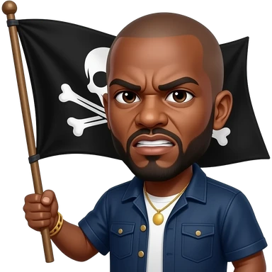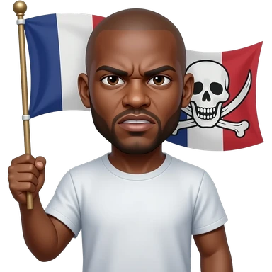 french rapper booba with bald head et angry eyebrows holding the pirate flag emoji