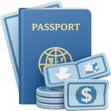 White passport cover with pastel pink boarding pass peeking out, clean composition emoji