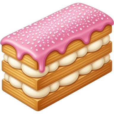 mille-feuille-cinematic-realistic-mille-feuille-dessert-emoji,-depicted-as-a-delicate-pastry-composed-of-two-crisp-layers-of-puff-pastry-with-a-rich-cream-filling,-rendered-with-intricate-textures-and-elegant,-soft-lighting. Please only show two layers emoji