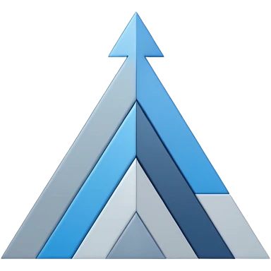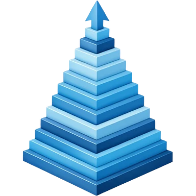The design should show stylized, stacked digital UI layers or building blocks rising diagonally to form an abstract upward arrow or graph. The aesthetic must be clean, geometric, and precise. Use a sophisticated monochromatic palette emoji