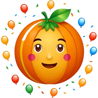 Una cara roja con naranja con rayos que explotan y llena de confeti emoji