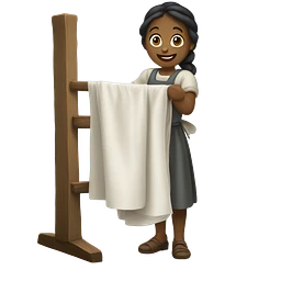 young washerwoman hanging large cloth spread out with the vernicle emoji