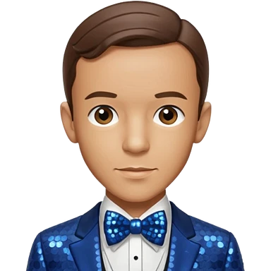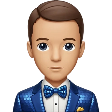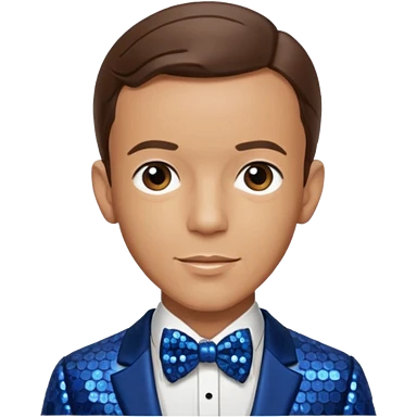 Fred Astaire with brown hair, dark blue sequin suit with bow tie emoji