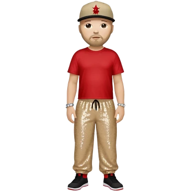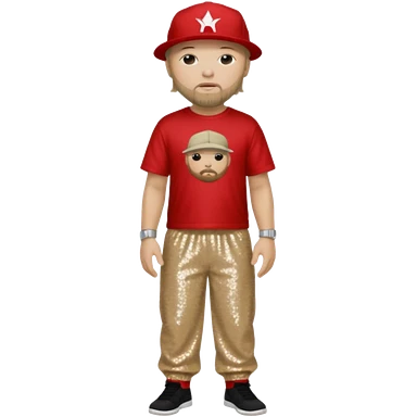 Fred Durst with dark blonde hair, red sequin crop top, beige sequin baggy pants emoji