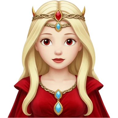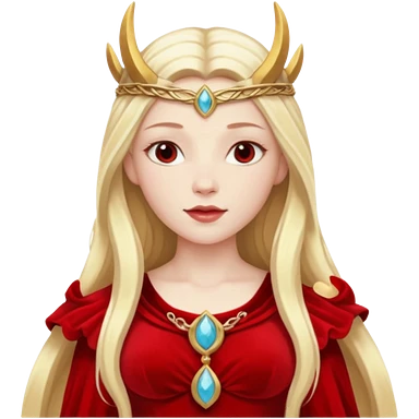 Freya, Goddess of Love from Gods and Goddesses with long golden blonde hair, red sequin outfit emoji | AI Emoji Generator