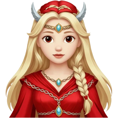 Freya, Love Goddess from Norse Mythology with long blonde hair, red outfit emoji