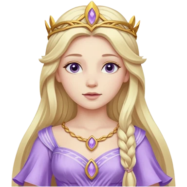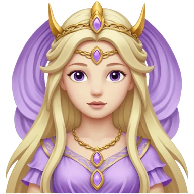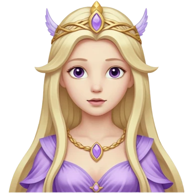 Freya, Goddess of Love from Gods and Goddesses with long blonde hair, lilac outfit emoji