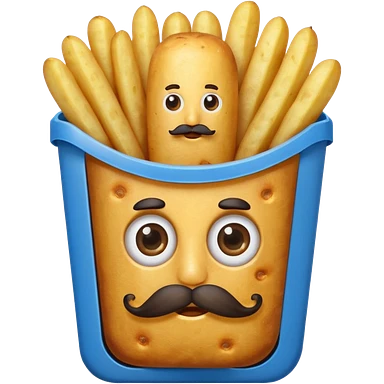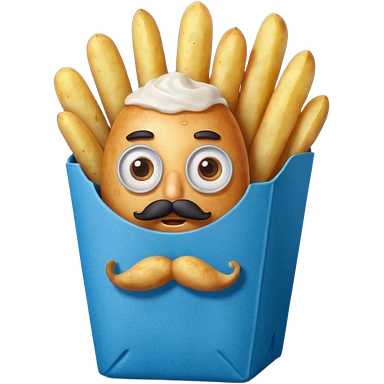 long slim fried potatoes in a blue carton, carton has eyes and mustache emoji