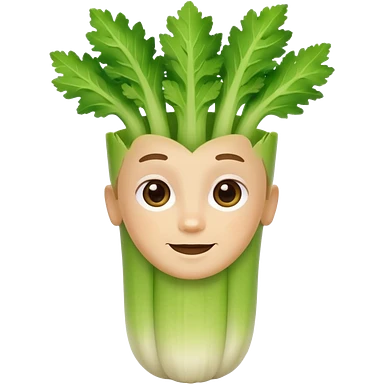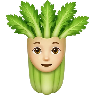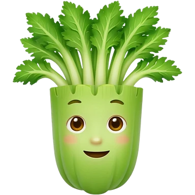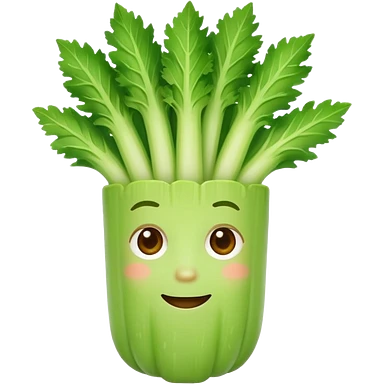 Friendly celery emoji avatar, cute and minimalistic style, warm eyes and gentle smile, flat design, soft shapes, clean modern look, highly recognizable at small sizes, centered composition, transparent or solid background, app icon quality. emoji