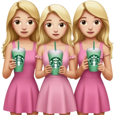 teenager friend group blond w/ freckles long hair pink dress with starbucks emoji