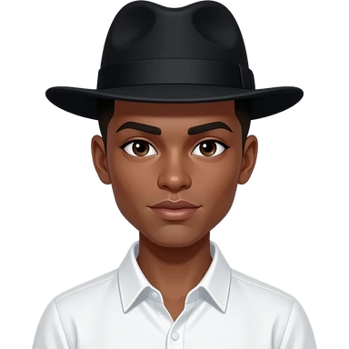 Dark masculine woman with short fade and white shirt with hat emoji