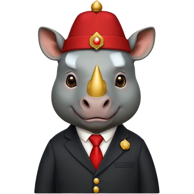 black suited rhino with fes hat emoji