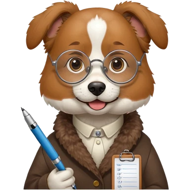 Friendly dog with clipboard and pen, wearing round spectacles. emoji | AI Emoji Generator