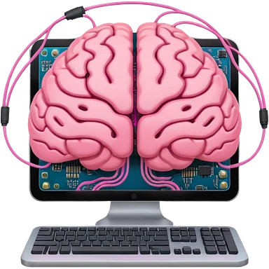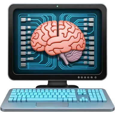 A brain inside a computer symbolizing AI emoji