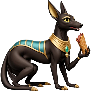mean Short-eared Black fur beautiful female alien anubis statue posed biting on bacon packaging emoji