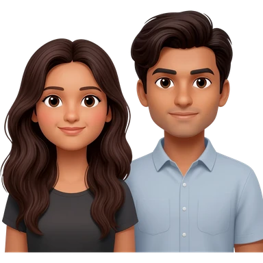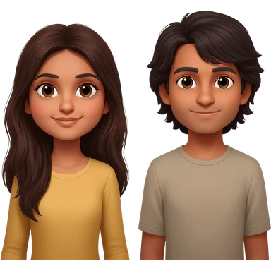 Two friends with dark brown hair Indian skin one has long hair one has shoulder length hair and a bit longer emoji