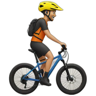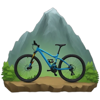 An icon featuring a mountain bike with wide tires, positioned on a forest trail or rocky mountain road. The background shows dense trees, steep slopes, and distant peaks under a clear blue sky. Transparent background highlights the thrill and rugged beauty of mountain biking. emoji