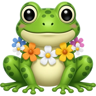 Frog & Peach Pub: stylish 3D emoji style, glossy surface, soft shadows, white background, centered, no text, cute frog character, big expressive eyes, bright green, emoji