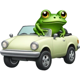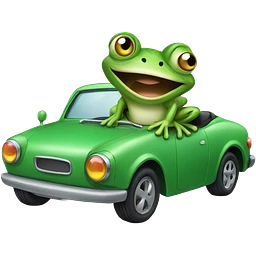 generate a frog with headphone in a scuba suit in an f1 car emoji