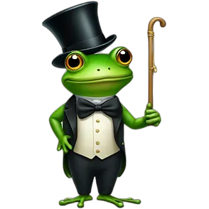 Frog in Green Top Hat – cheerful frog with shiny emerald top hat. emoji