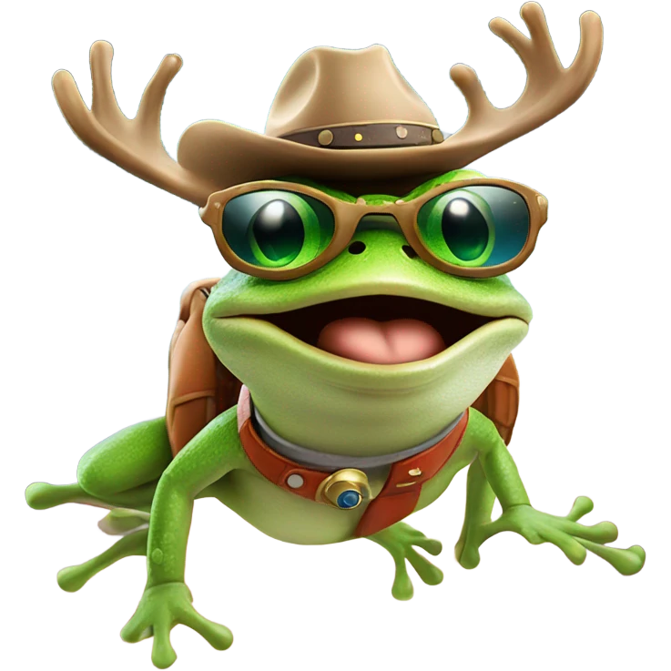 Frog in space riding a reindeer with cowboy hat & aviator sunglasses emoji | AI Emoji Generator