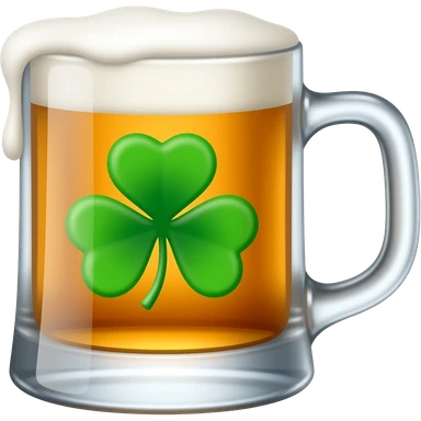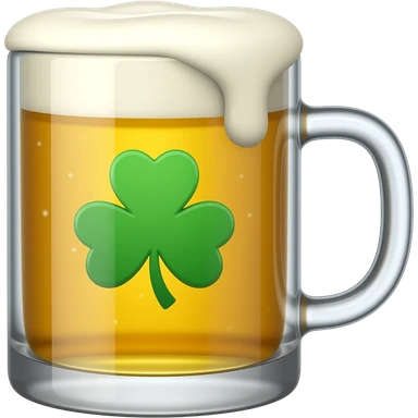 McCarthy's Irish Pub: 3D emoji style, glossy surface, soft shadows, white background, centered, no text, mug of beer with four leaf clover on it, bright green, emoji