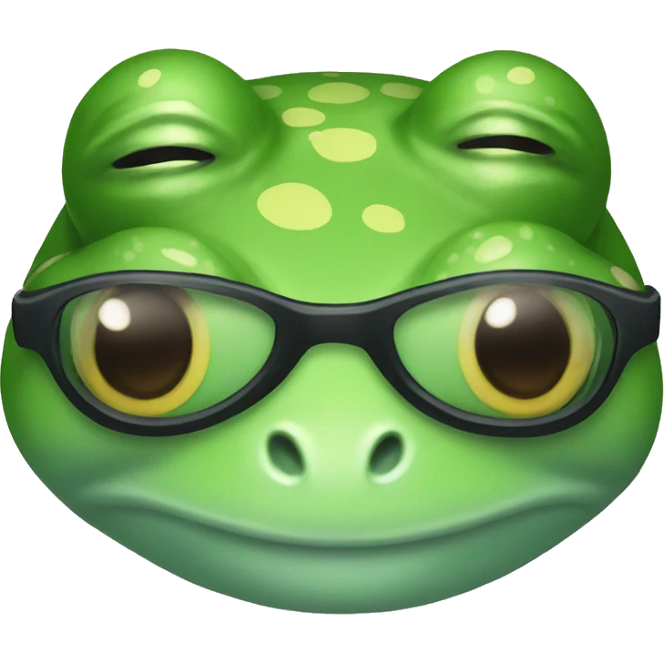 A toad frog wearing a black hoodie with some nerd glasses on sitting behind a computer screen emoji