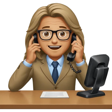 office-boss-excited-phone-desk-long-haired-man emoji