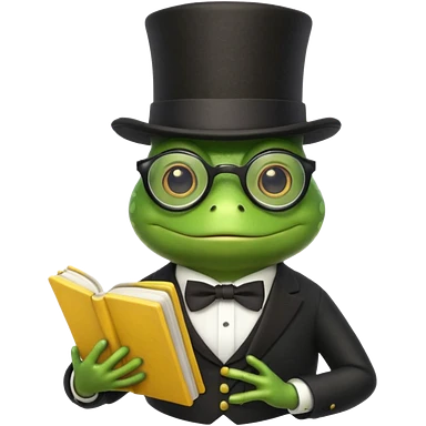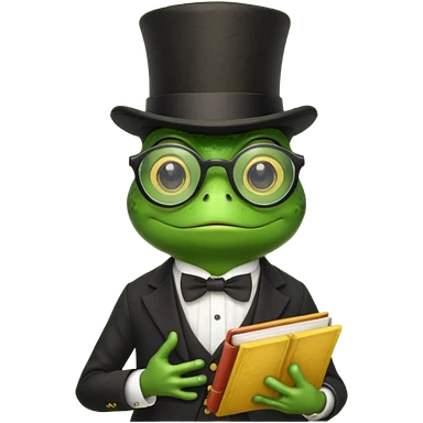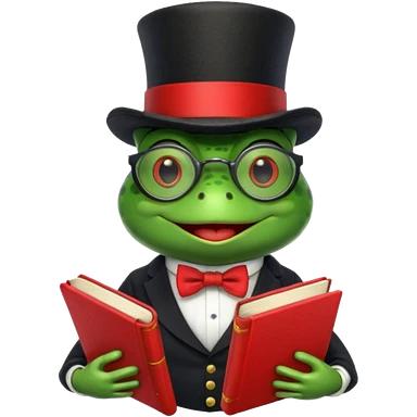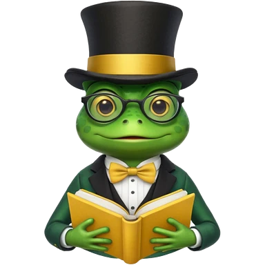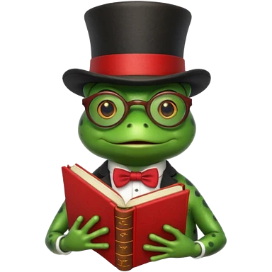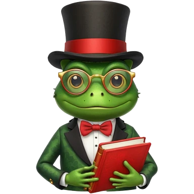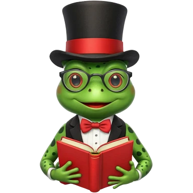 frog wearing top hat with glasses and red book emoji