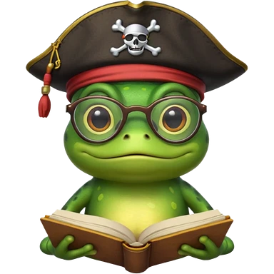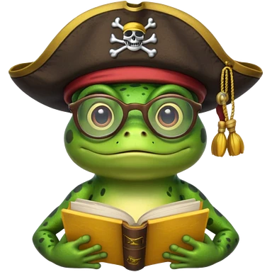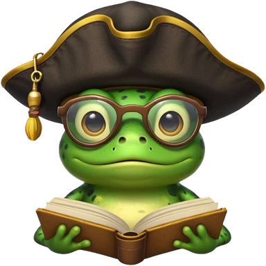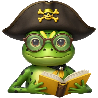 frog wearing pirate hat with glasses and yellow book emoji