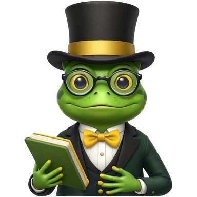 frog wearing top hat with glasses and yellow book emoji