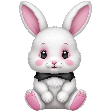 a beige rabbit with a pink ribbon on its neck emoji