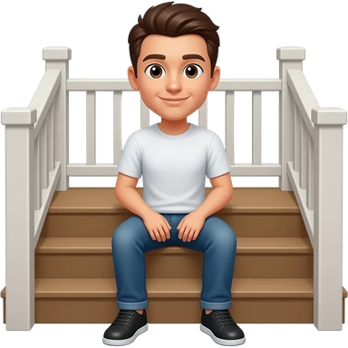 African American teenage boy sitting on porch steps wearing blue and white jersey shirt with 22 on it getting cornrow braided in her by an African American dark skin woman with shoulder length curly hair wearing a leopard print bucket hat wearing denim jeans and a denim jacket emoji