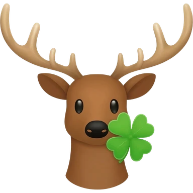 Fröhlicher elchkopf mit schaufeln und mit einem Glücksklee neben dran emoji | AI Emoji Generator