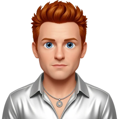 Brian Littrell from Backstreet Boys with blue eyes, reddish blonde hair, white metallic shirt, silver necklace emoji