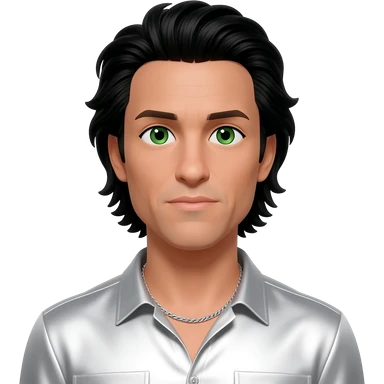 Kevin Richardson from Backstreet Boys with green eyes, black long hair, white metallic shirt, silver necklace emoji
