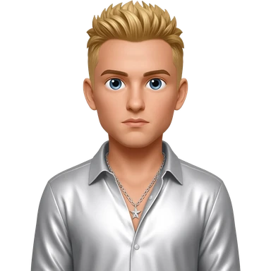 Nick Carter from Backstreet Boys with blue eyes, blonde hair, white metallic shirt, silver necklace emoji