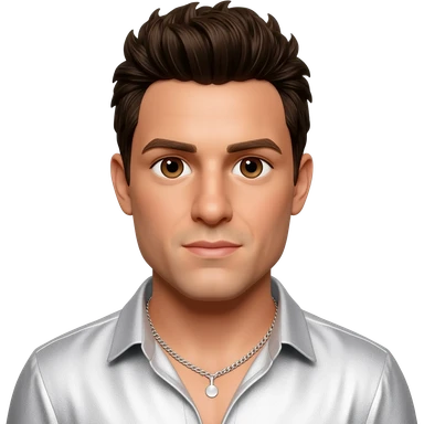 AJ McLean from Backstreet Boys with brown eyes, dark brown hair, white metallic shirt, silver necklace emoji