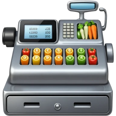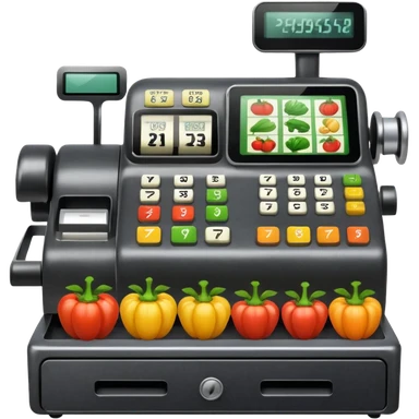 cash register from the front with symbols for vegtables emoji