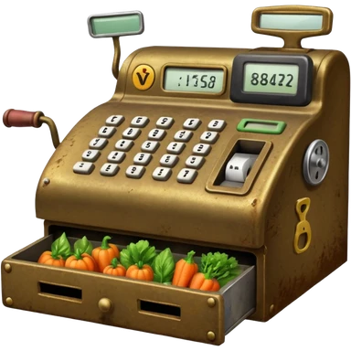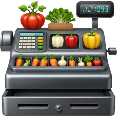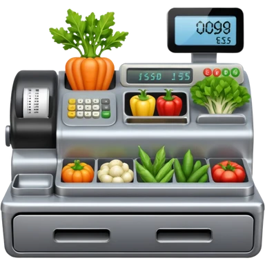 cash registerwith symbols for vegtables from the front emoji
