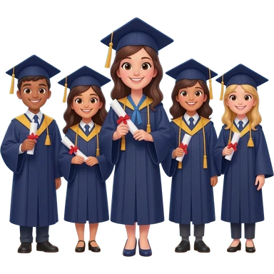 school graduation with a pretty female graduating student with long brown hair, blue eyes emoji