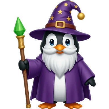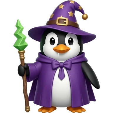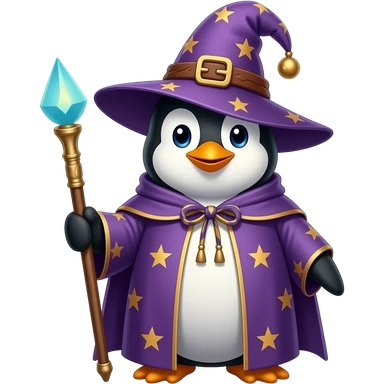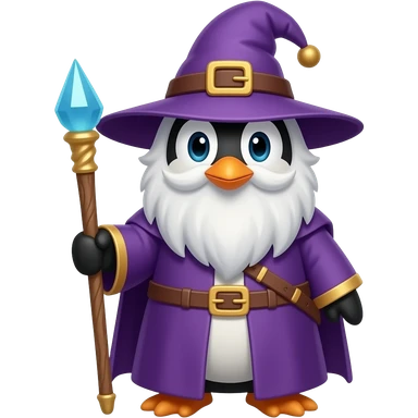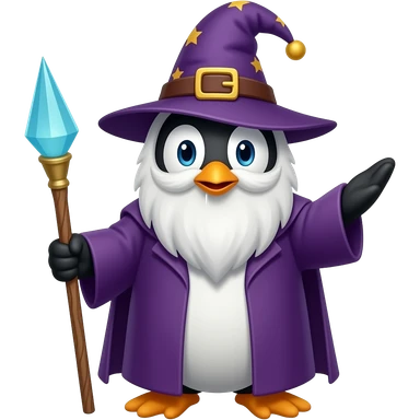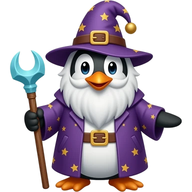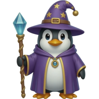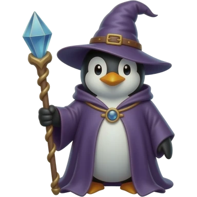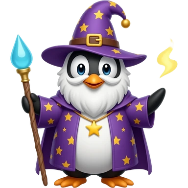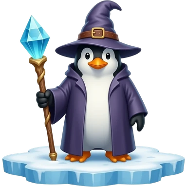 penguin wizard casting an ice spell with snowflakes and frost emoji