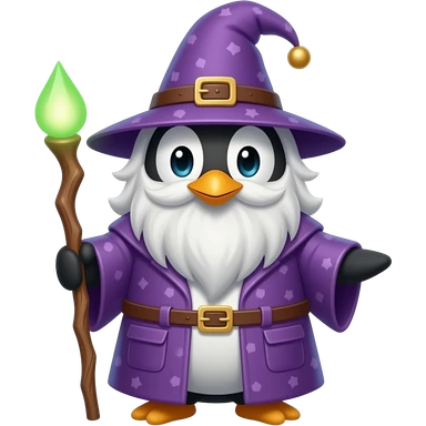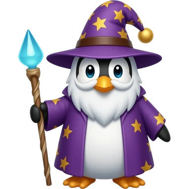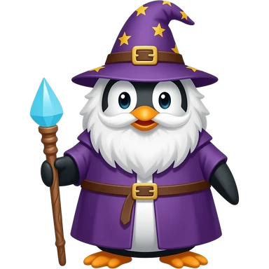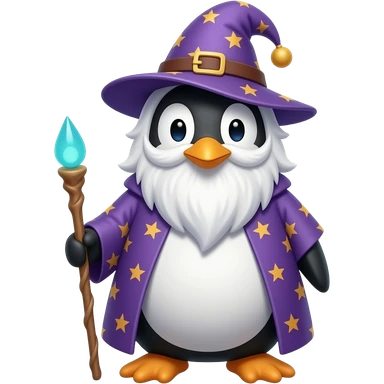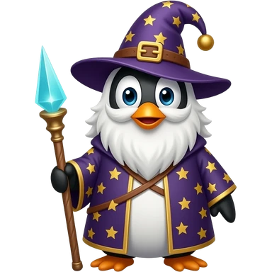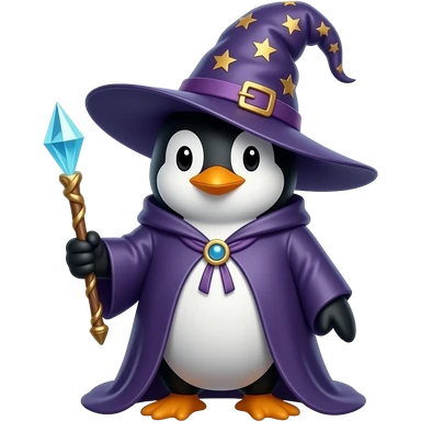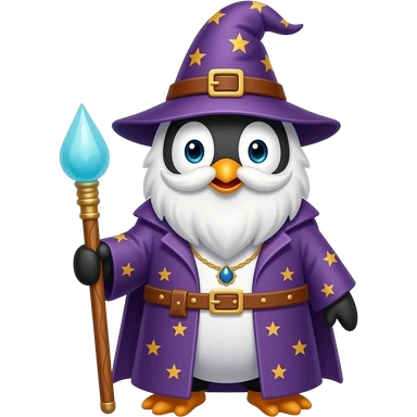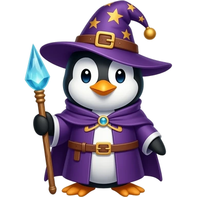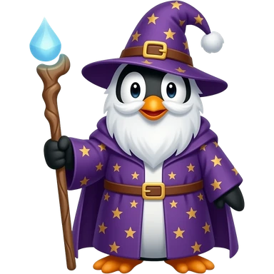 penguin wizard casting an ice spell with snowflakes and frost emoji