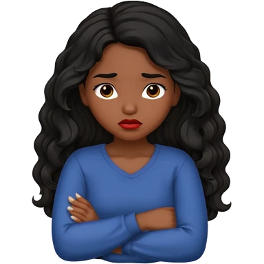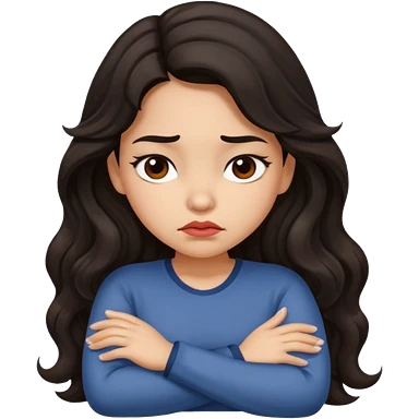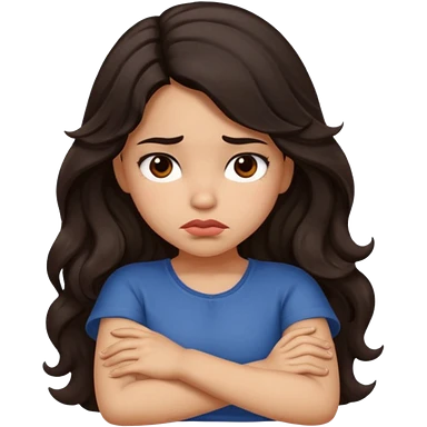 Hispanic girl with dark, long, wavy hair crossing her arms and pouting emoji
