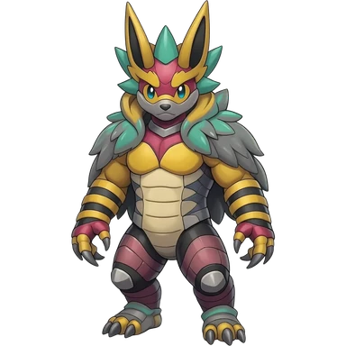 Colorful masked armored leathery scaly furry Meloetta-Manectric-Solgaleo-Raikou-Pokémon-Digimon-Fakémon-fusion-hybrid-creature emoji