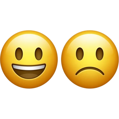 Half smile (this emoji: 🙂 ) half sad (this emoji: ☹️) with the same yellow faces as shown in the emojis and frowns on the right smiles on left emoji