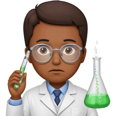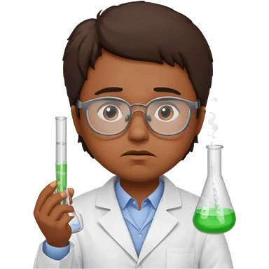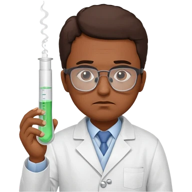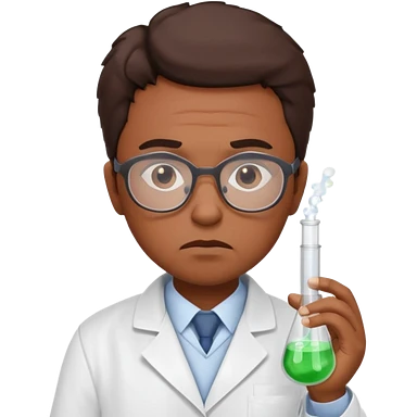 Frowns with Glasses, Disappointed Scientist: Brown Skin, Lab coat, thin glasses, holding test tube, upset expression emoji