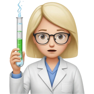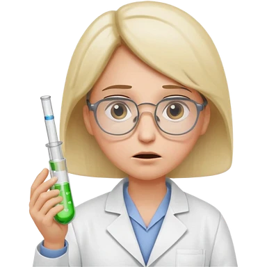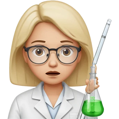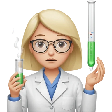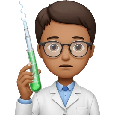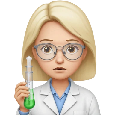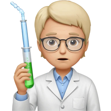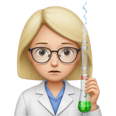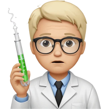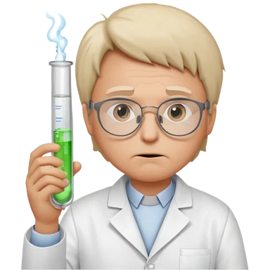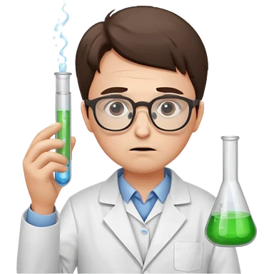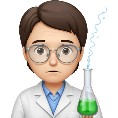 Frowns with Glasses, Disappointed Scientist: Lab coat, thin glasses, holding test tube, upset expression emoji