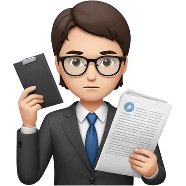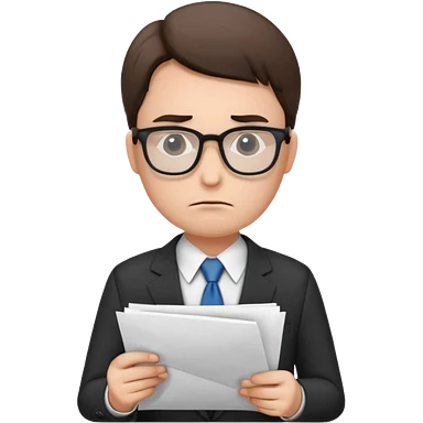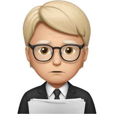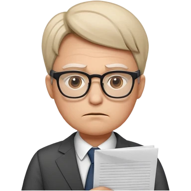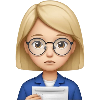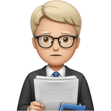 Frowns with Glasses, Office Boss: Business outfit, holding papers, frowning behind glasses, serious look emoji | AI Emoji Generator