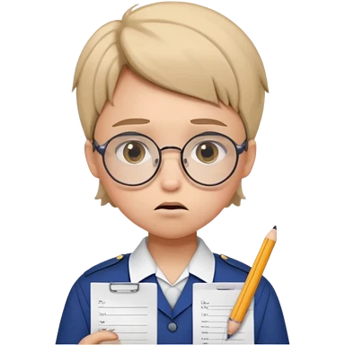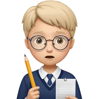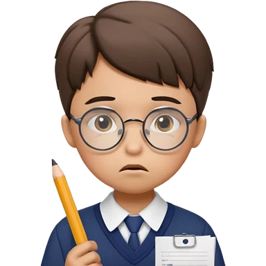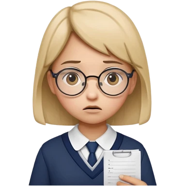 Frowns with Glasses, Angry Student: Teen in uniform, round glasses, holding test paper, pouting emoji